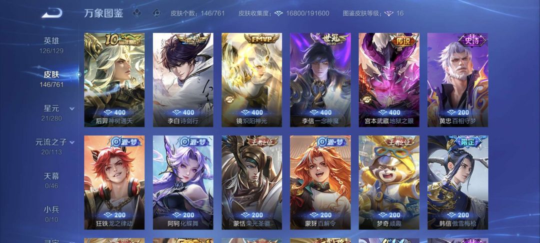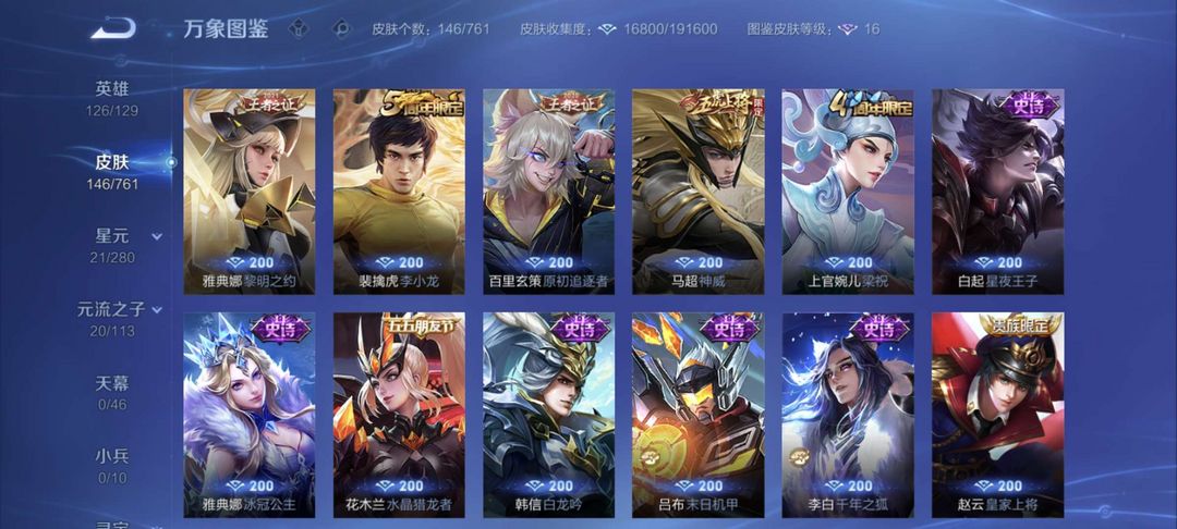 【非沄直接上号】极品V10★三历史国标★430皮★六典藏★诸葛亮新典藏★虎年五限定★鸣剑戈影★活力突击️★多限定