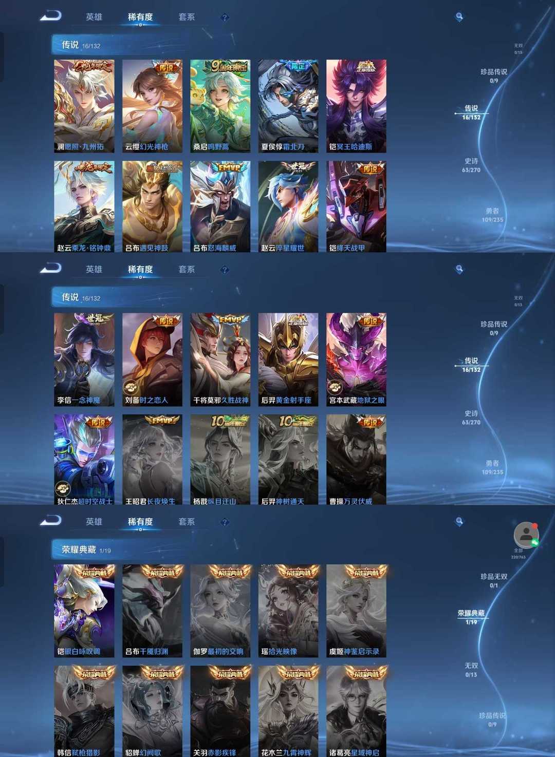 【非云直上】V10★皮肤榜一★539皮满典藏★鲁班时之奇旅会员★虞姬黛羽霜翎星元★吕布白金战神★全能大师★多金标★个性按键