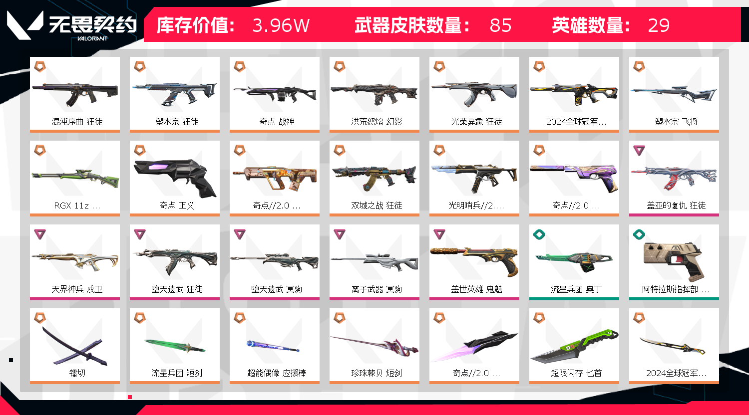• 皮肤资产价值: 39650