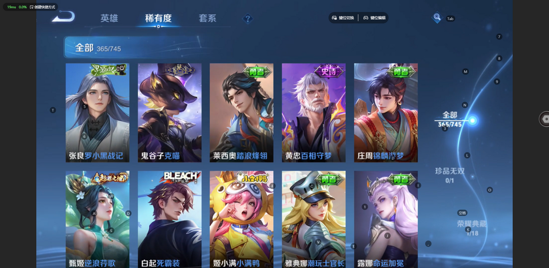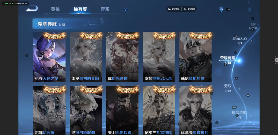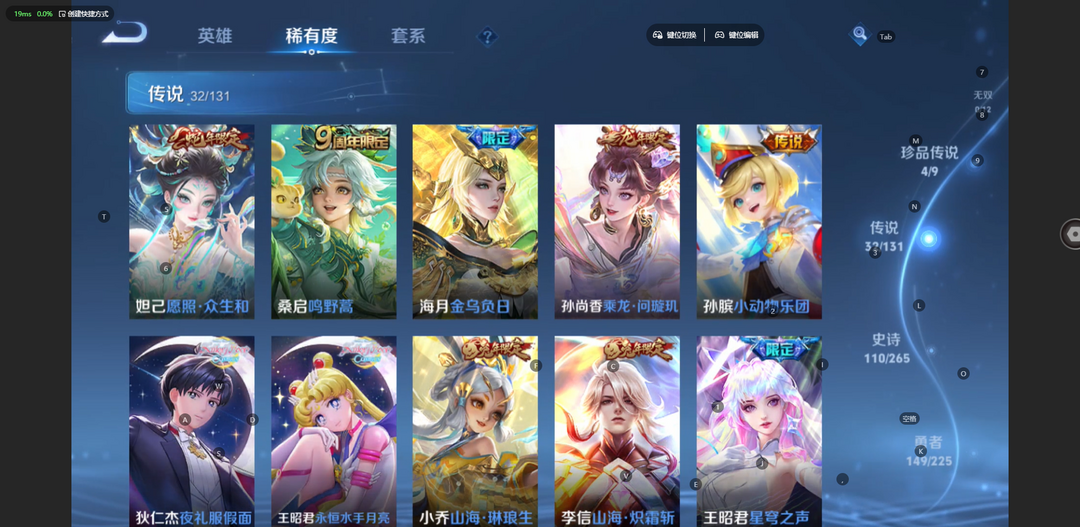 v10、537皮6水4无双、安琪拉-颠倒童话·魔镜、朵莉亚-神骥、遇见神鼓、齐天大圣、白虎志、韩信荣耀典藏、73传说、时之魔女、瑶无双、青丘、九尾、神器明辉仪