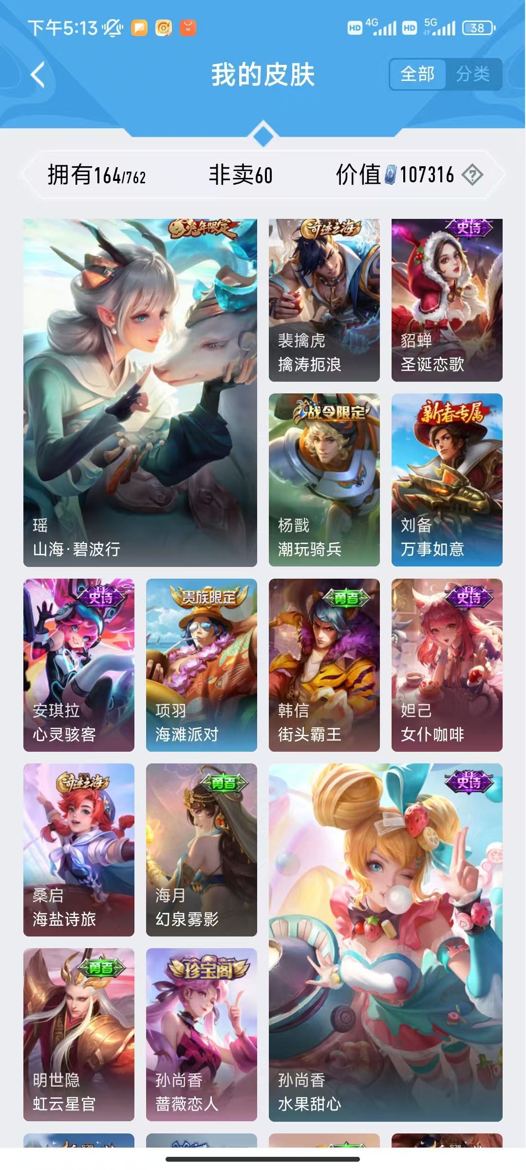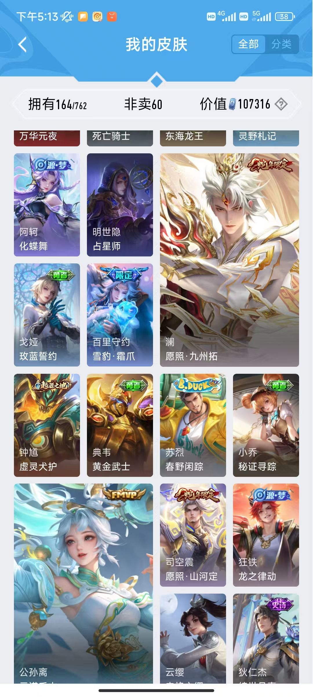 【非沄直接上号】极品V10★三历史国标★430皮★六典藏★诸葛亮新典藏★虎年五限定★鸣剑戈影★活力突击️★多限定