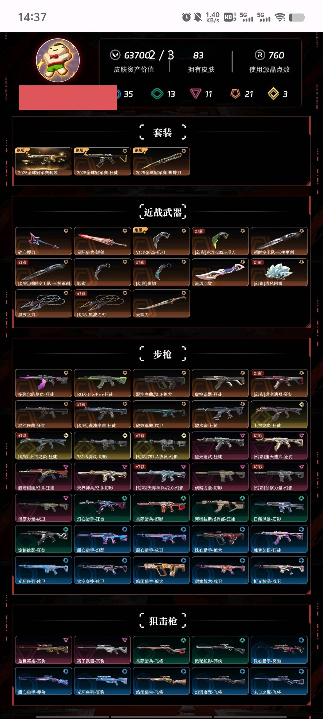 • 皮肤资产价值: 63700