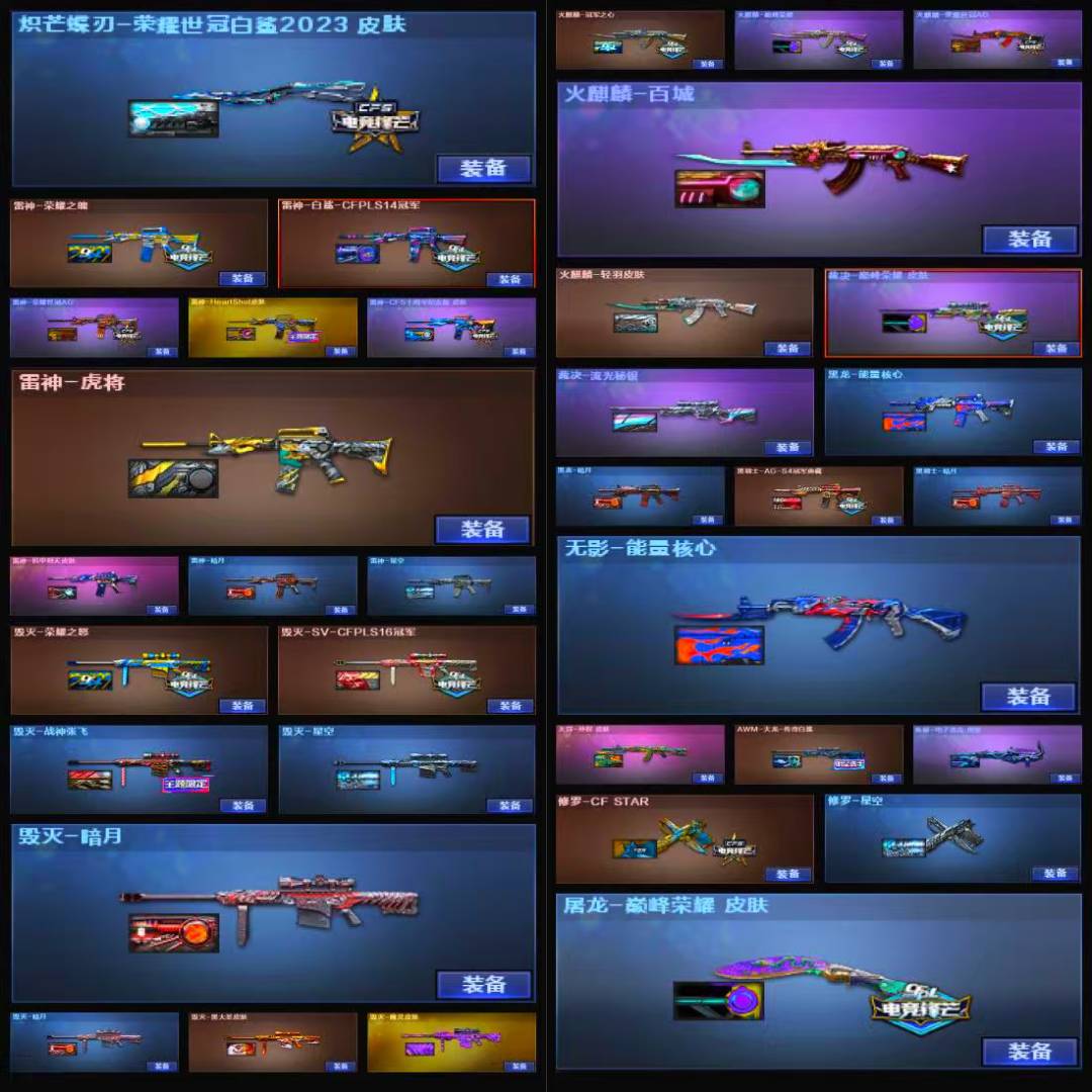 该账号已经过虚拟财产认定,若使用科技和鼠标宏等特殊外设导致账号出现问题,必追究法律责任!祝老板玩的愉快;USP-雷暴,USP-雷暴王者,柯尔特-荣耀世冠白鲨2023,传说幽冥,柯尔特-冠军之特,炽芒蝶刃,隼,