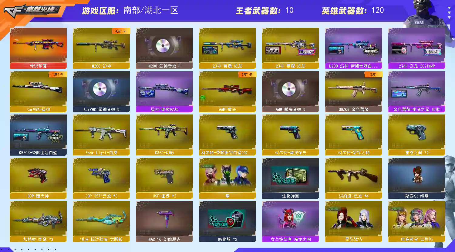 首页 > 租号大厅 > 穿越火线 > 电信区/湖北一区 > 1️⃣幻神4皮宠儿白鲨带音效卡⚡裁决三件套⚡星神三件套⚡Qbz白虎G36幻影⚡副武器天花板