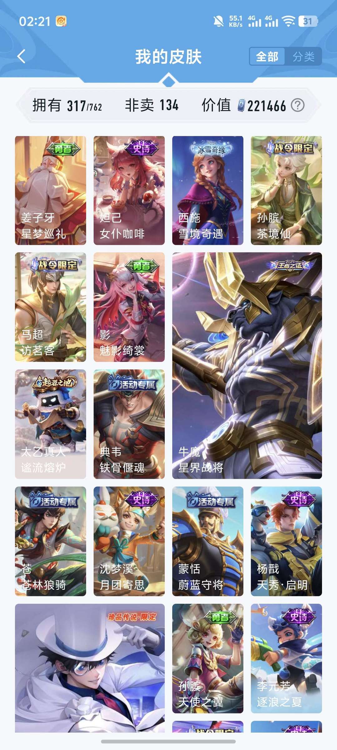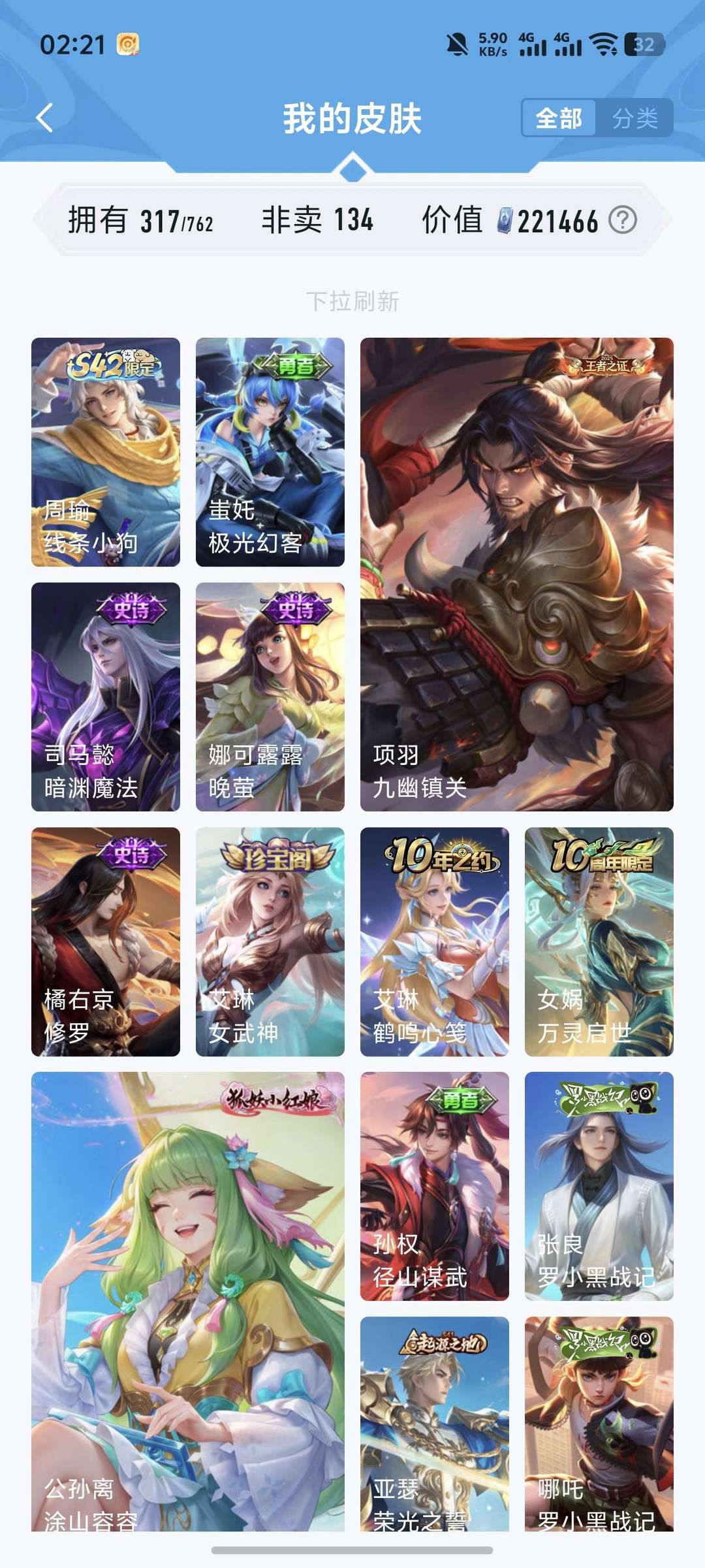 V10、543皮14水、吕布典藏-千魇归渊、愿照·九州拓、愿照·众生和、怪盗基德、伽罗星传说红枫、瑶典藏拾光映像、冥王哈迪斯、、龙年限定、齐天大圣