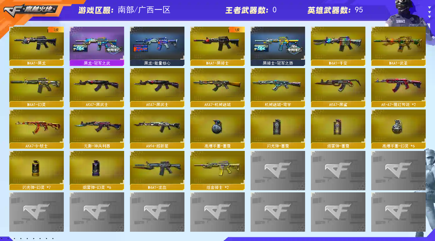 • 游戏区服:穿越火线 / 电信区 / 广西一区