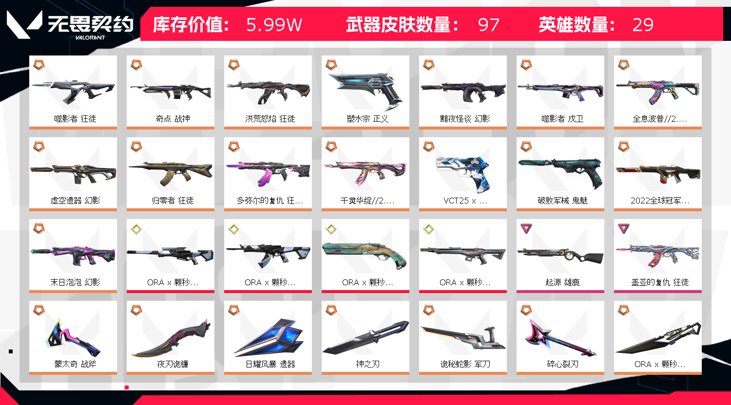 • 皮肤资产价值: 59920