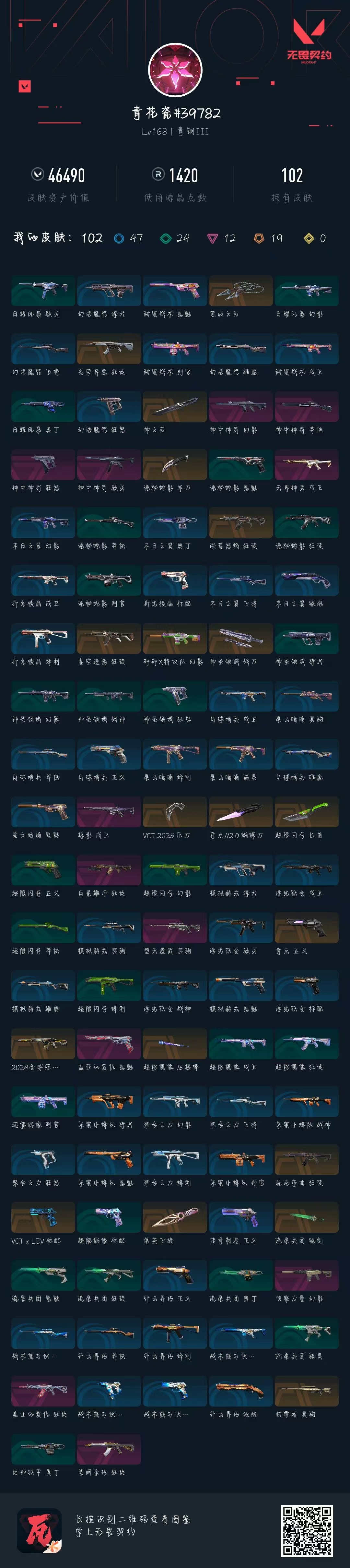 可排位 英雄28 武器皮肤数量102;
