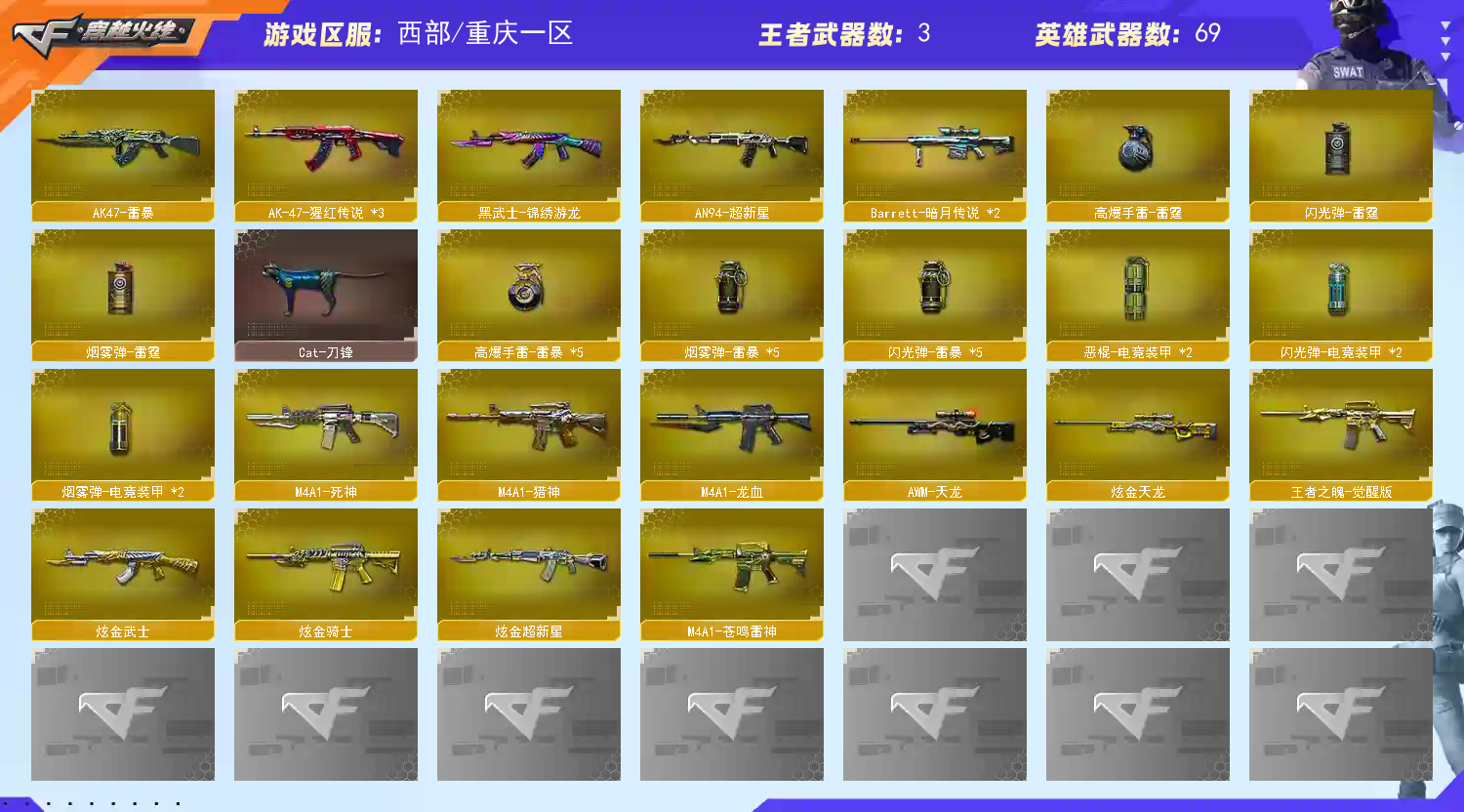 • 游戏区服:穿越火线 / 电信区 / 重庆一区