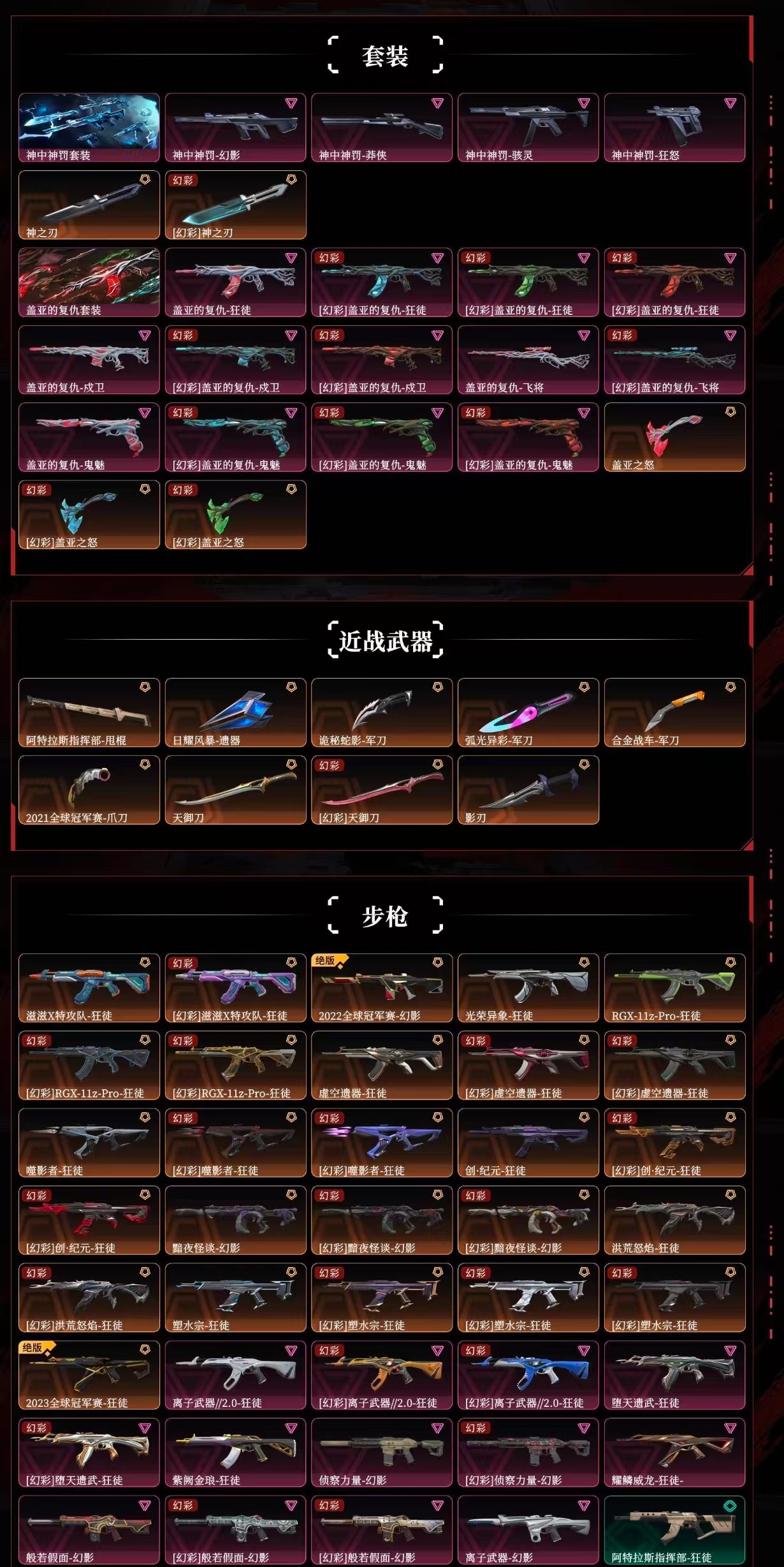 6.5w超凡挂件带妹号 21冠军爪刀 22/23冠军 神罚套 盖亚炫彩全套 天御刀 塑水狂徒/正义