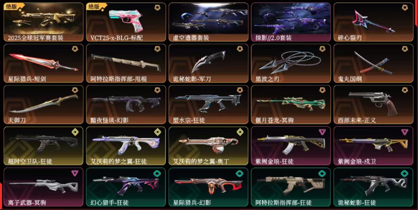 ✅可排位✨25冠军掠影2.0虚空套✨黑波之刃鬼丸国纲✨塑水宗超时空紫金狂徒✨黯夜幻影✨艾沃莉狂徒奥丁