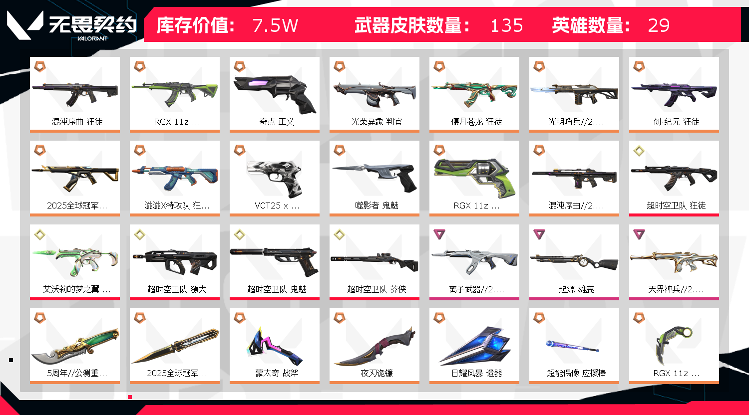 首页 > 租号大厅 > 无畏契约-wegame > wegame/wegame > 超时空卫队套装❤️怜悯之刃青龙刀❤️显卡离子爪🖤狂徒三幻神🔶显卡青龙弃王掠影💢25冠套幻影侦察