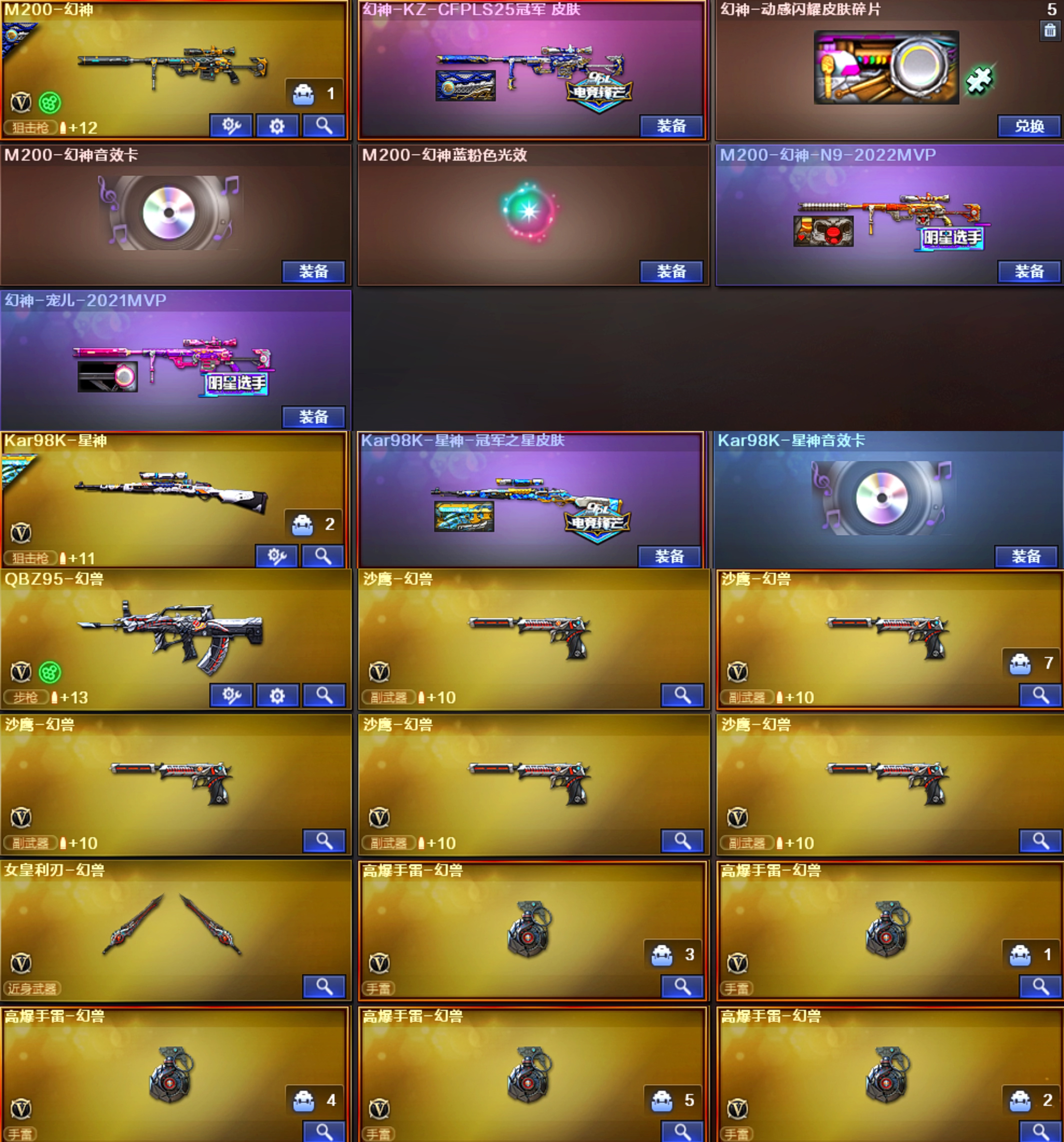 🍁北部五套幻兽♥CFS柯尔特♥幻神KZ3皮幻神音效卡♥星神冠军星神音效卡♥裁决音效卡♥副武器满配♥