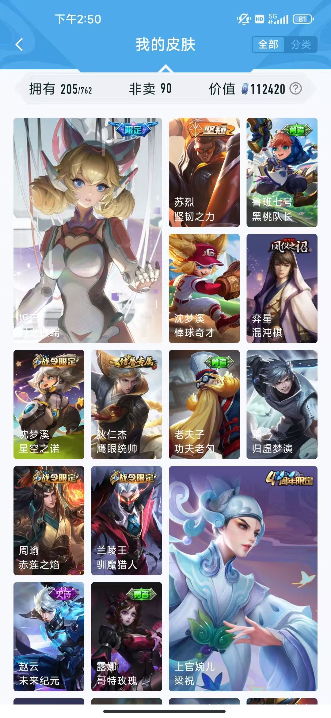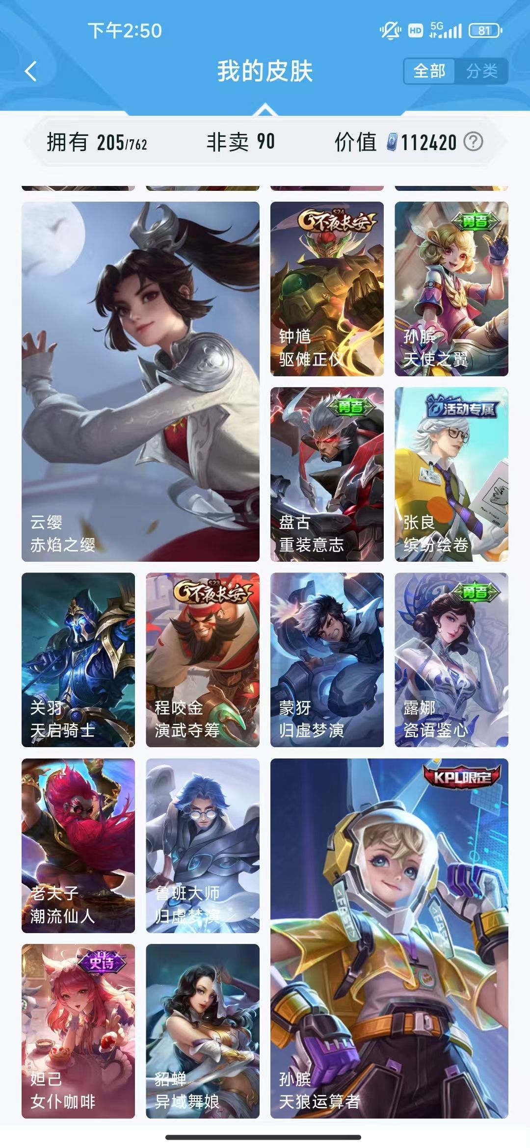【非沄直接上号】极品V10★三历史国标★430皮★六典藏★诸葛亮新典藏★虎年五限定★鸣剑戈影★活力突击️★多限定