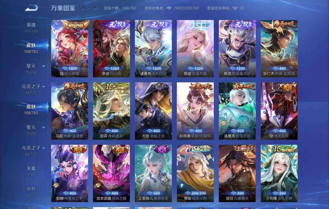 【非沄直接上号】极品V10★三历史国标★430皮★六典藏★诸葛亮新典藏★虎年五限定★鸣剑戈影★活力突击️★多限定