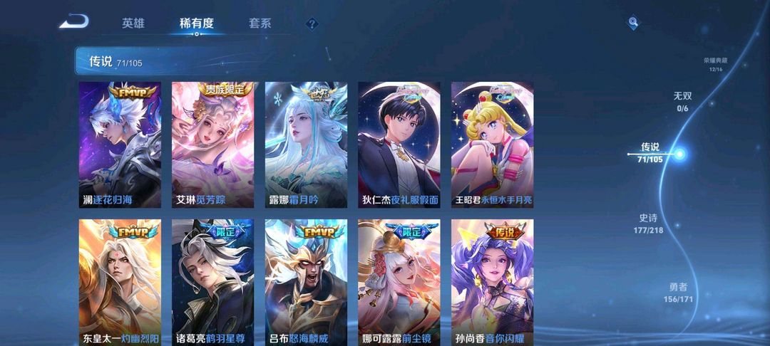 V10、550皮14水、吕布典藏-千魇归渊、云缨-神骥·越千峰、怪盗基德、伽罗星传说红枫、瑶典藏拾光映像、冥王哈迪斯、、龙年限定、齐天大圣
