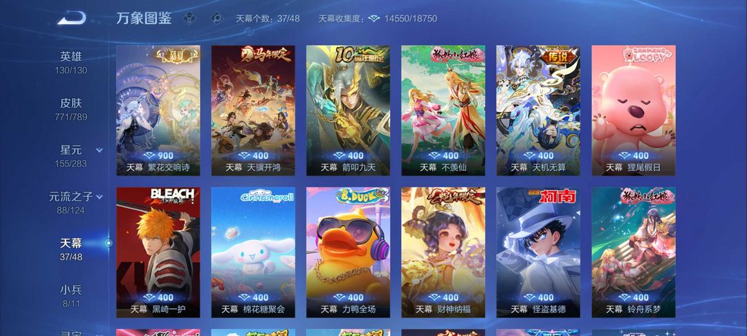 V10、550皮14水、吕布典藏-千魇归渊、云缨-神骥·越千峰、怪盗基德、伽罗星传说红枫、瑶典藏拾光映像、冥王哈迪斯、、龙年限定、齐天大圣