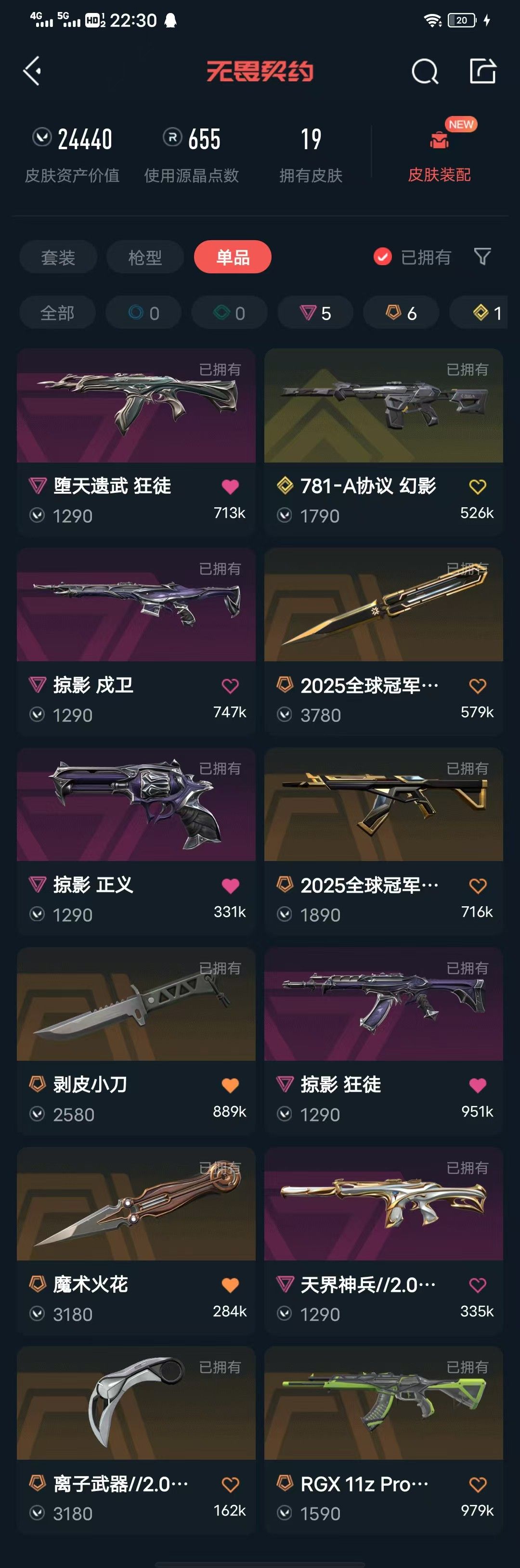 首页 > 租号大厅 > 无畏契约-wegame > wegame/wegame > 可排杀30+拉黑25冠军套⚡魔术火花剥皮小刀离子爪刀⚡显卡掠影堕天AK⚡天界幻影掠影正义