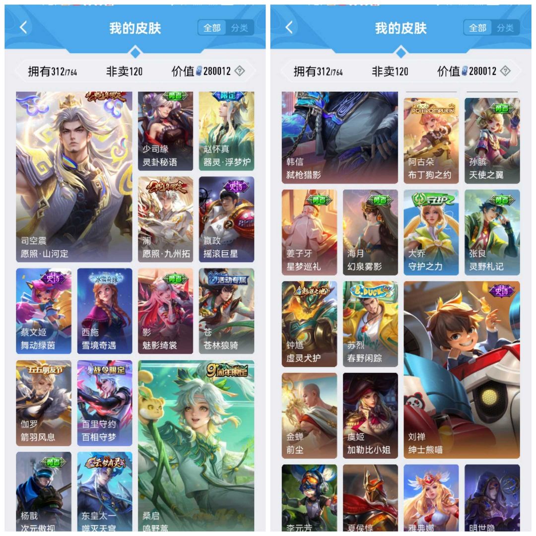 V11✨780皮肤✨马年全皮✨颠倒童话✨千魇归渊✨无相✨神罪✨山海经天机白泽✨全套死神联动✨全套穆夏✨馥梦繁花✨美神临世✨全荣耀水晶✨全无双