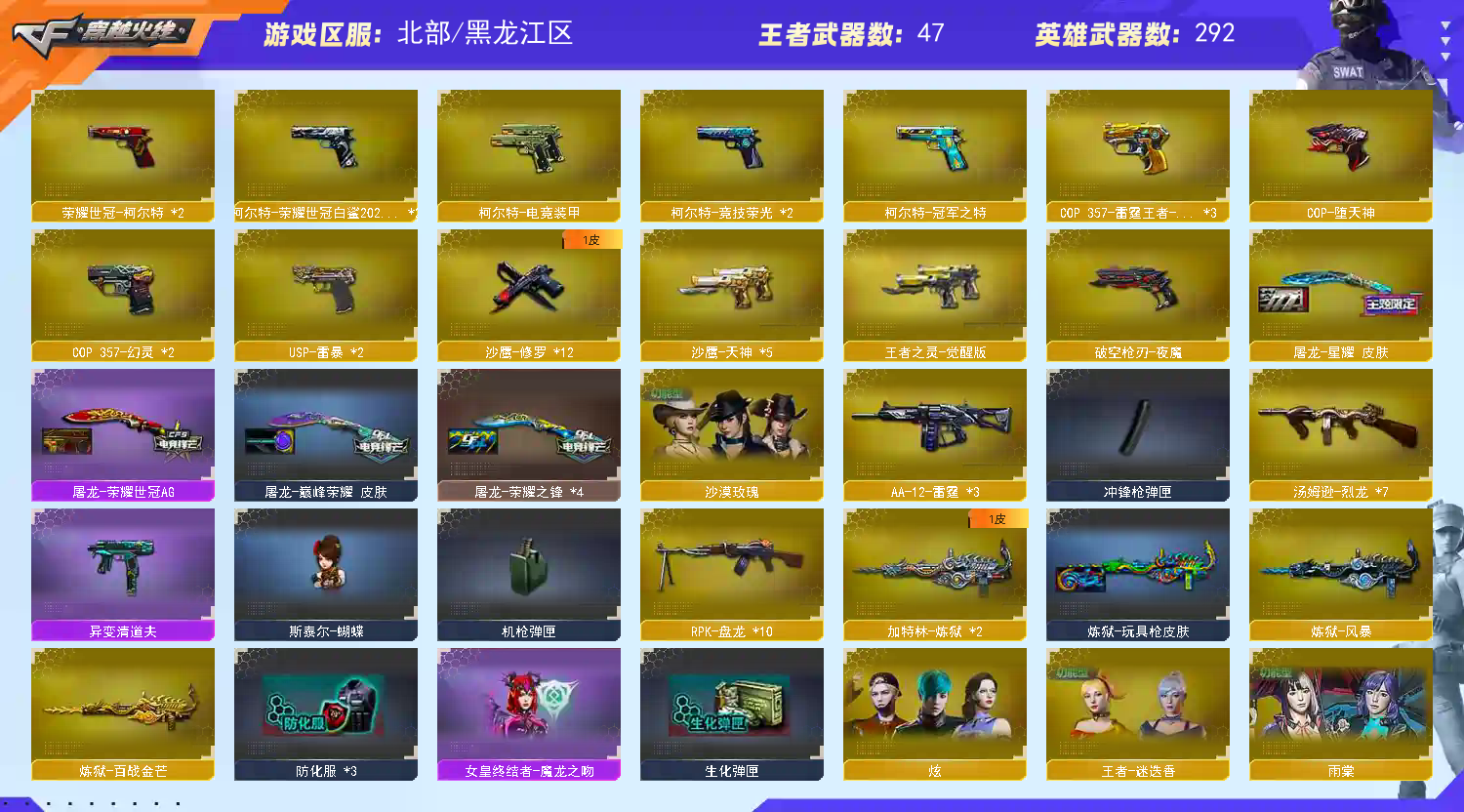 女帝影煞幻神星火9皮带卡♥星神裁决全部三件套质量皮白虎qbz满配16把高质量手枪♥生化满配;USP-雷暴,荣耀世冠-柯尔特,柯尔特-荣耀世冠白鲨2023,柯尔特-冠军之特,沙漠玫瑰,传说影煞,传说女帝,