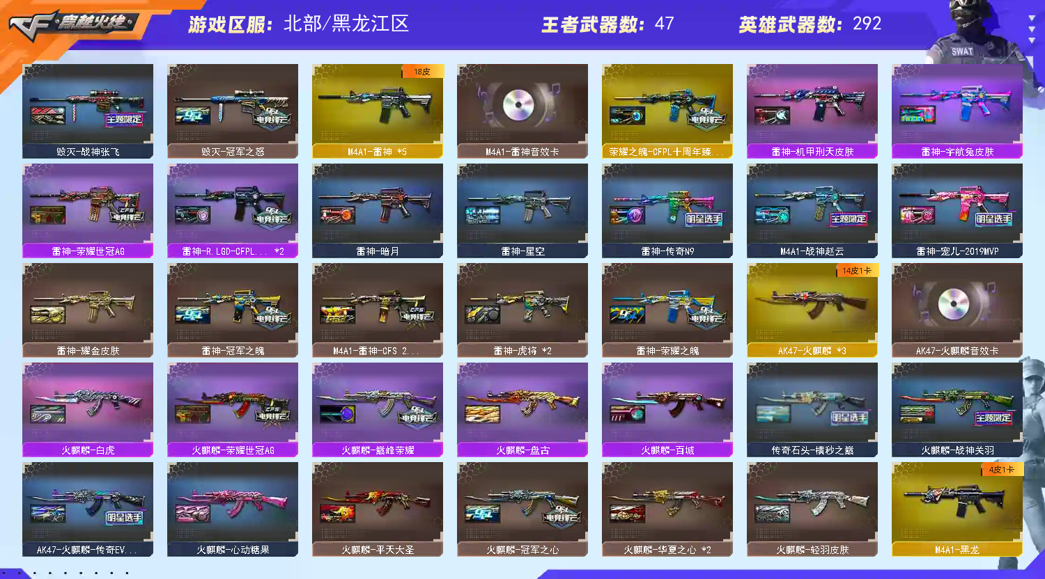 首页 > 租号大厅 > 穿越火线 > 网通区/黑龙江区 > 【北.部】300V女帝影煞幻神星火9皮带卡♥星神裁决全部三件套质量皮白虎qbz满配16把高质量手枪