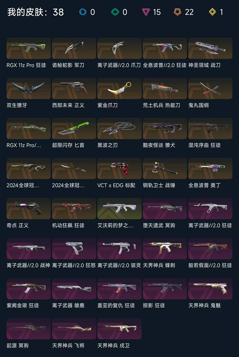 可排位♥神话挂饰♥24冠军套♥紫金爪黑波刃♥10把ak皮♥猫猫ak♥机动狂徒♥离子2.0套♥盖亚
