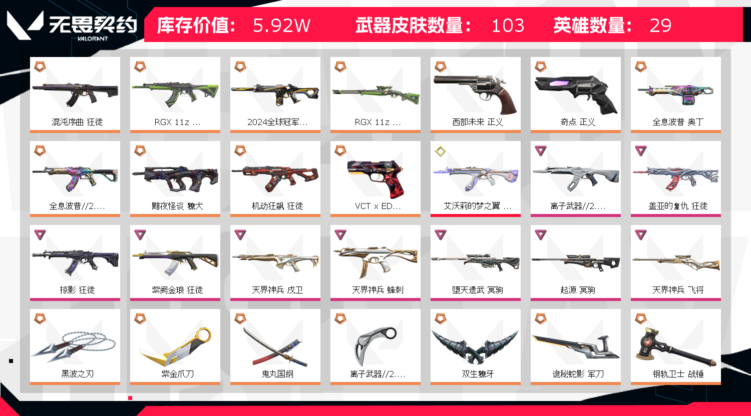 • 皮肤资产价值: 59210