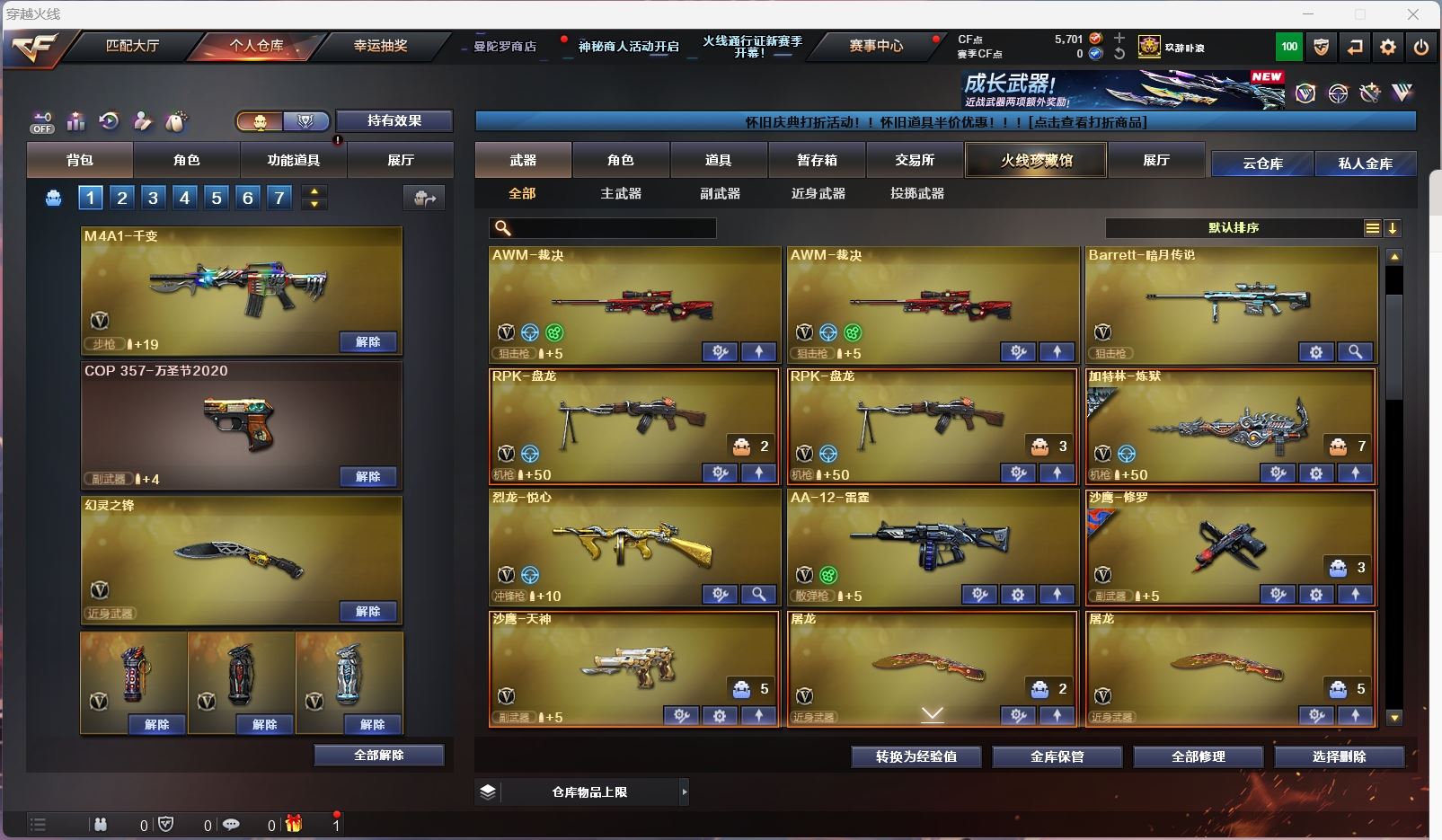 70v【scar白虎】【qbz金色蔷薇】【朱雀】【火麒麟】【黑龙】【雷神+卡】【黑骑士+卡+白马银枪】【毁灭+卡】【极光】【裁决 】【武器:青龙 王者之心 盘龙*2 炼狱 烈龙 】【2手枪:修罗 天神 】【8刀具:屠龙*2 擎天 堕天神 幻灵之峰 夜魔 王者之啸 王者之击 】【5雷套:堕天神*2 夜魔雷 幻灵雷*2】【小人枪:雷神精英刀锋 】【音效卡:雷神音效卡 毁灭音效卡 黑骑士音效卡 】【四防角色:王者葵貂蝉 】-;RPK-盘龙,QBZ03-金色蔷薇,Scar Light-白虎,