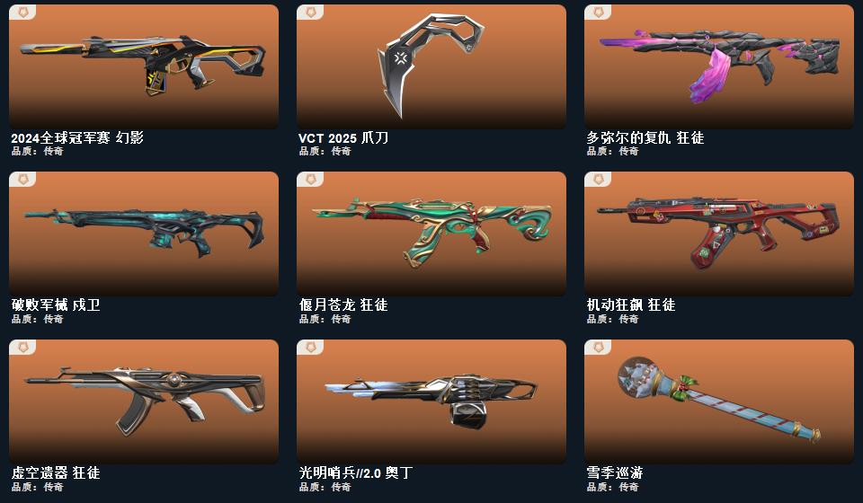 wegame无畏契约★影钩,VCT 2025 爪刀,神圣领域 战刀,鬼丸国纲,超能偶像 应援棒,流星兵团 短剑,珍珠棘贝 短剑,钢轨卫士 战锤,威龙之刃,幻心猎手 鬼魅,悠闲猫生 幻影,特拉斯指挥部 莽侠
