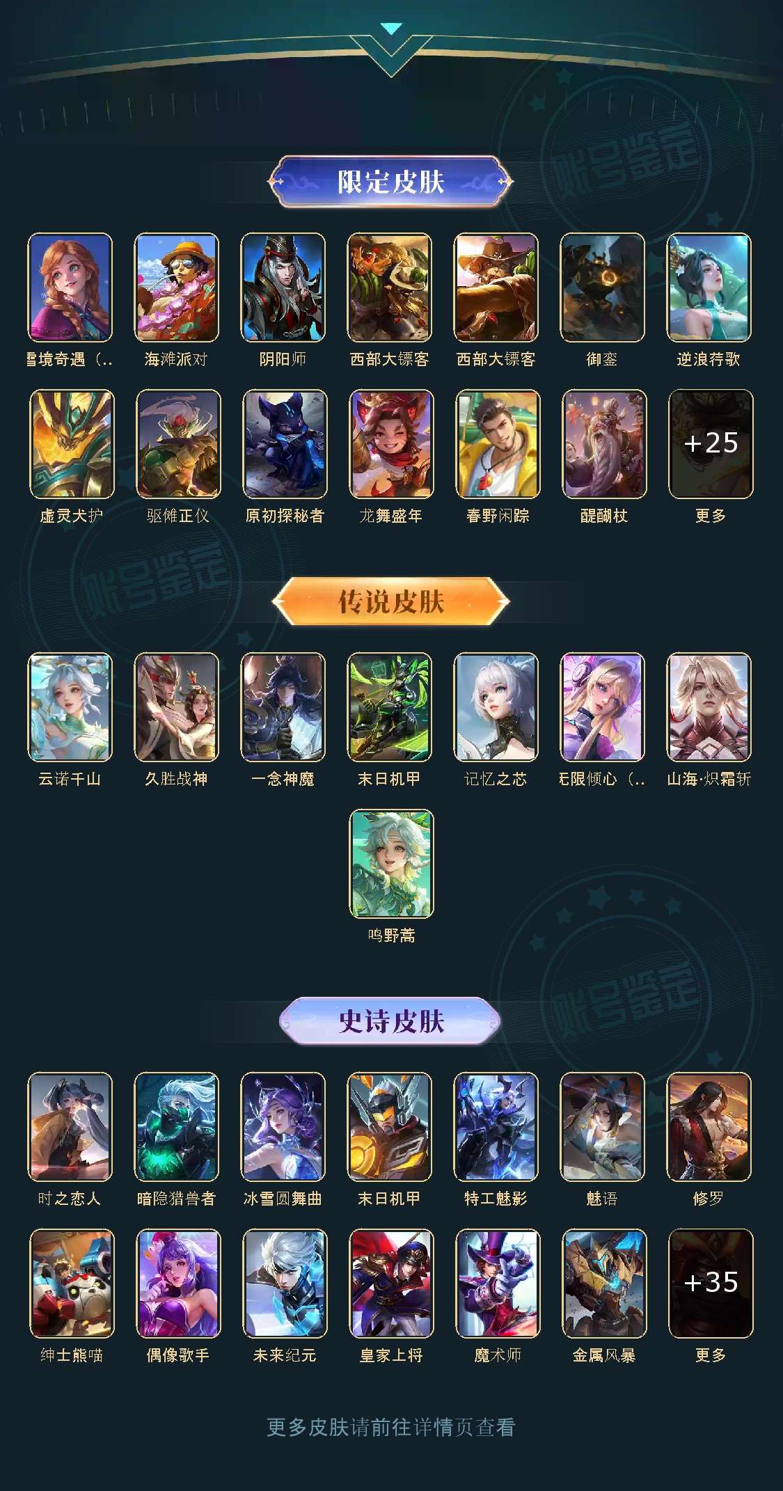 V10、550皮14水、吕布典藏-千魇归渊、云缨-神骥·越千峰、怪盗基德、伽罗星传说红枫、瑶典藏拾光映像、冥王哈迪斯、、龙年限定、齐天大圣