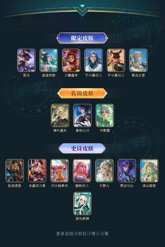 扫码上号看最后一张图🔥极品V10🔥520皮-满典藏🔥七夕限定·鹤归松栖🔥瑶-真我赫兹🔥妄想奇谈🔥灼幽烈阳🔥弑枪猎影🔥鹤羽星尊🔥传说天幕