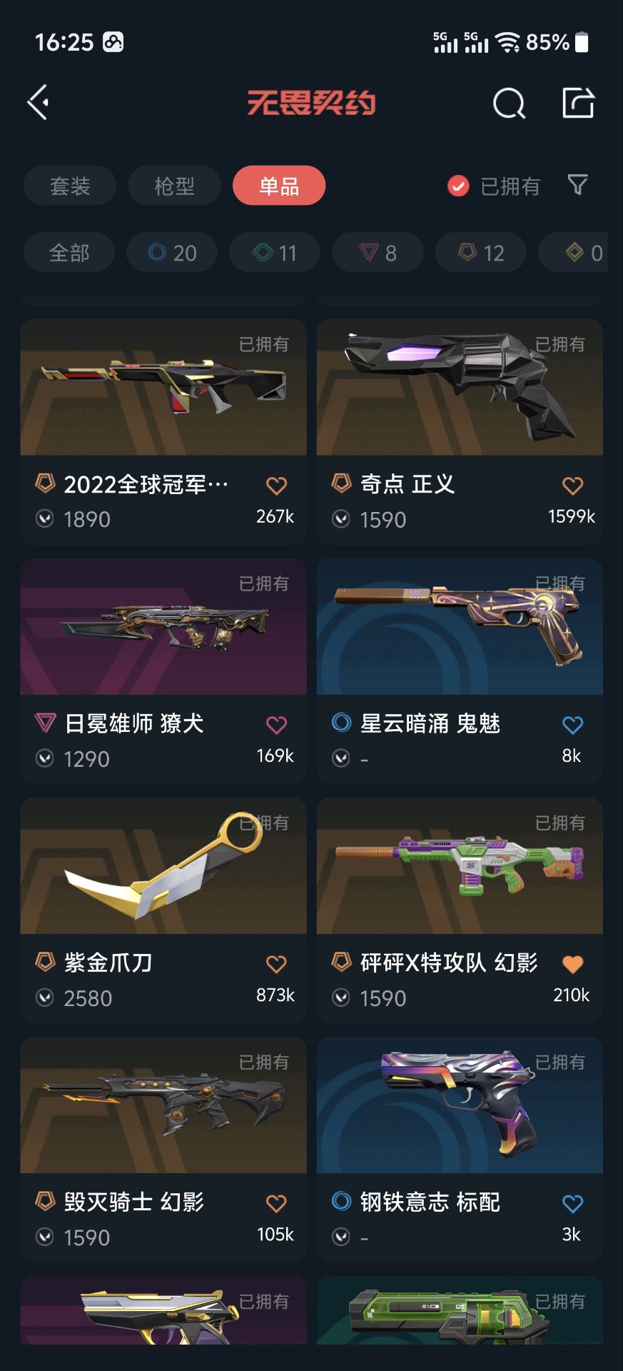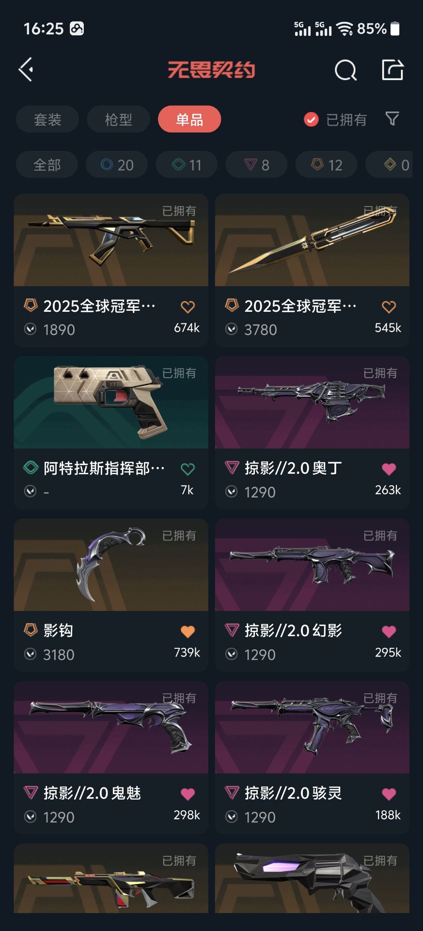 首页 > 租号大厅 > 无畏契约-wegame > wegame/wegame > 25年冠军套/掠夺2.0全套/22年冠军幻影/23年冠军狂徒/奇点正义/紫金爪刀/紫金标配/全英雄