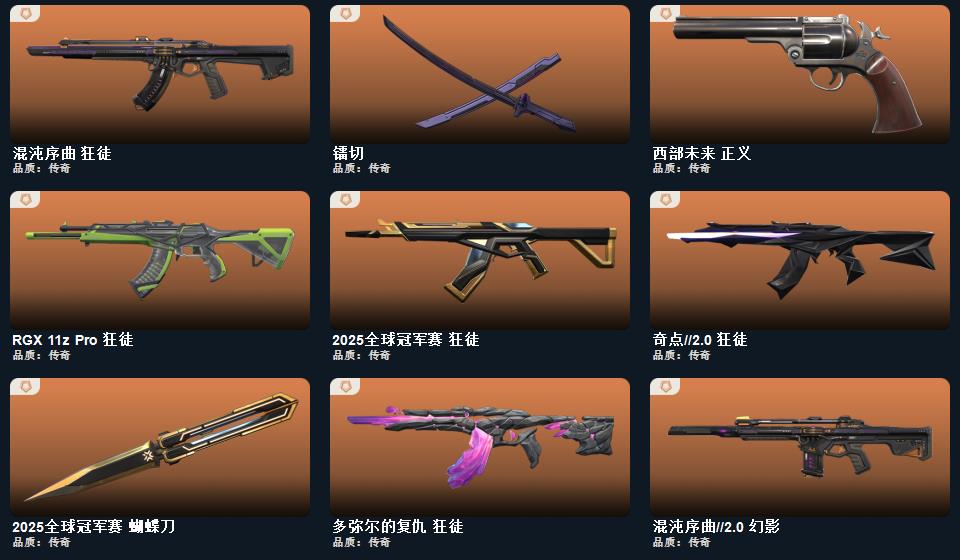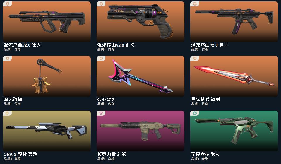 wegame无畏契约★碎心裂刃,镭切,混沌链枷,星际猎兵 短剑,2025全球冠军赛 蝴蝶刀,幻心猎手 鬼魅,甜心猎手 蜂刺,混沌序曲 狂徒,ORA x 颗秒 冥驹,诛心猎手 奥丁
