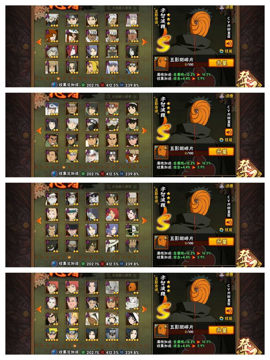 戴帽虎皮➣黑绝➣神驹阿斯玛➣4000万战力➣450全忍者全通灵➣满时装满奥义➣漂泊带土➣十尾带土