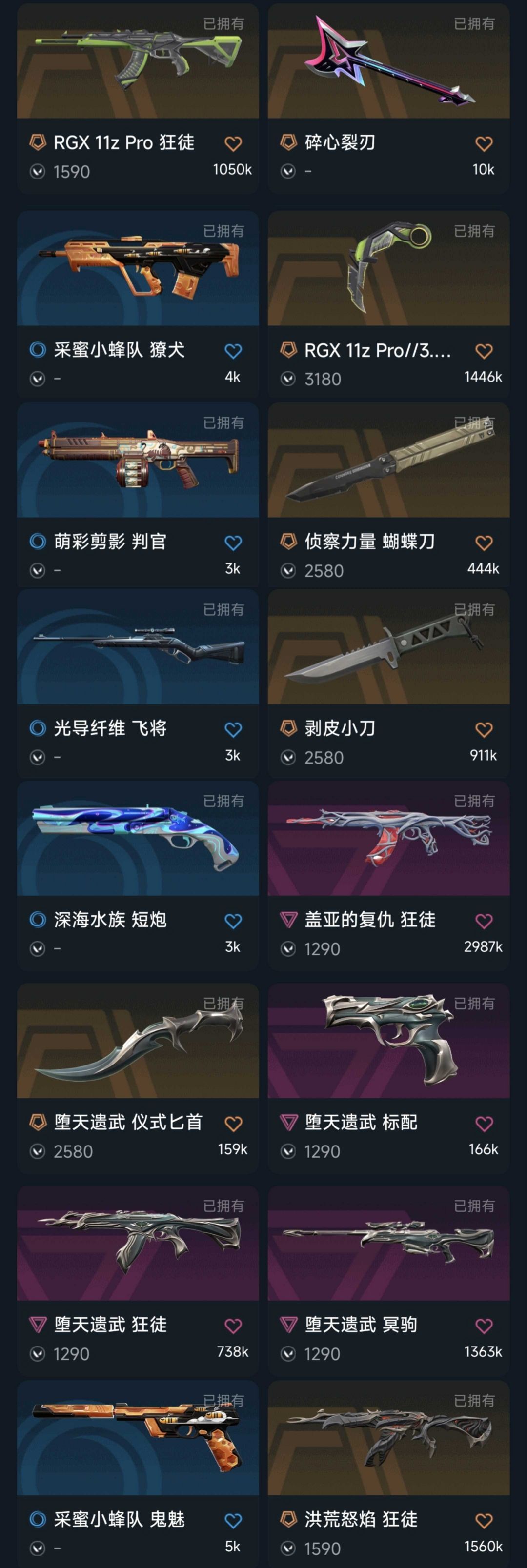 首页 > 租号大厅 > 无畏契约-wegame > wegame/wegame > 21冠军套10万库存♉塑水宗套堕天遗武套耀鳞威龙套♏RGX盖亚洪荒狂徒♐RGX爪刀黑波之刃炫彩全部满