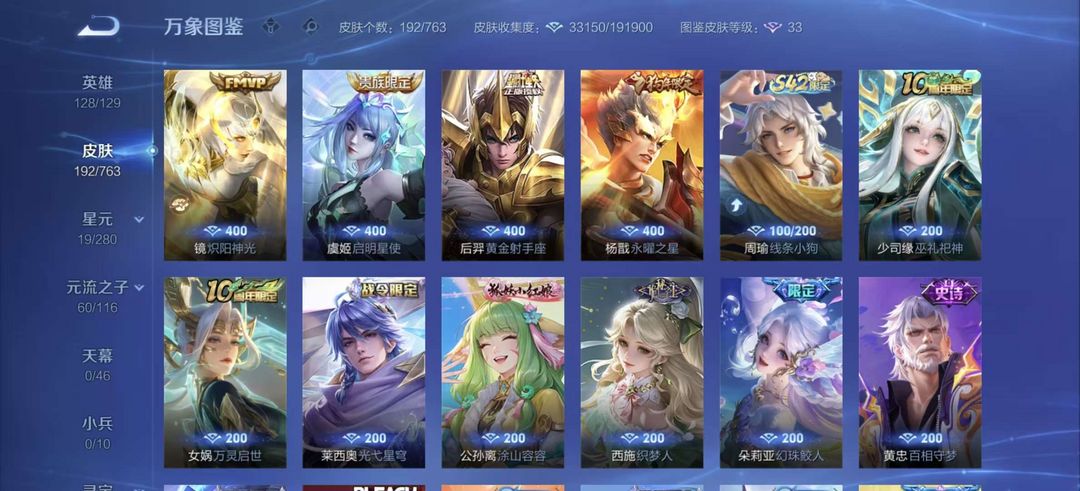 V 10!十个荣耀水晶!花木兰荣耀典藏神启/太后/天鹅/神谕/活力突击/鸣剑/飓风号/全息,双王者之证!360皮肤,全英雄