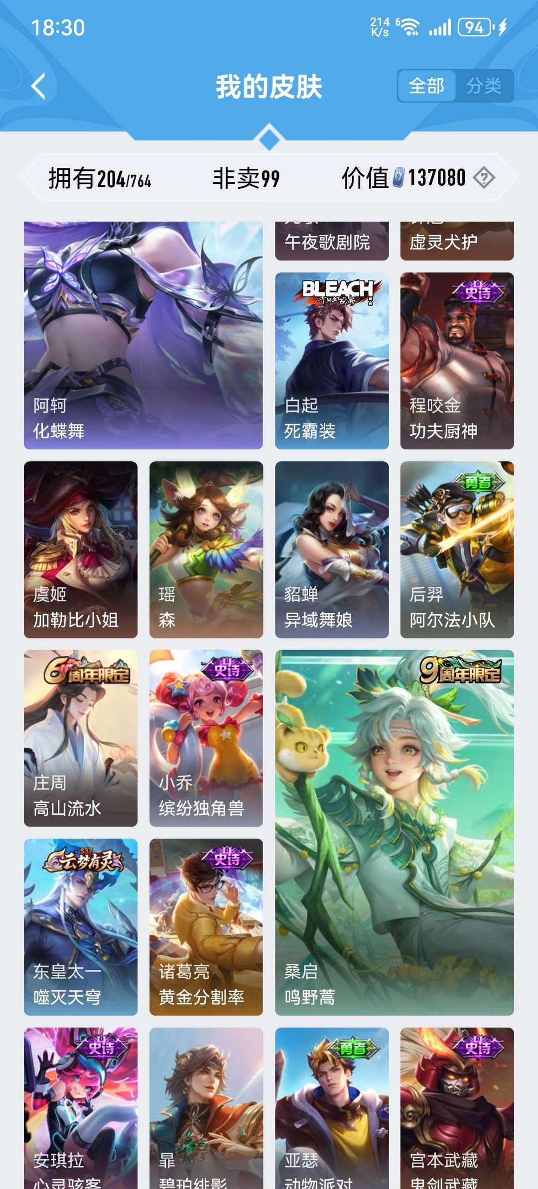 女生号 贵10 多皮肤多传说 别拿那些空号v10来比 要看性价比 貂蝉武则天夏侯惇孙悟空李白鲁班小乔荣耀水晶 妲己九尾无双皮肤 80个传说 473皮肤
