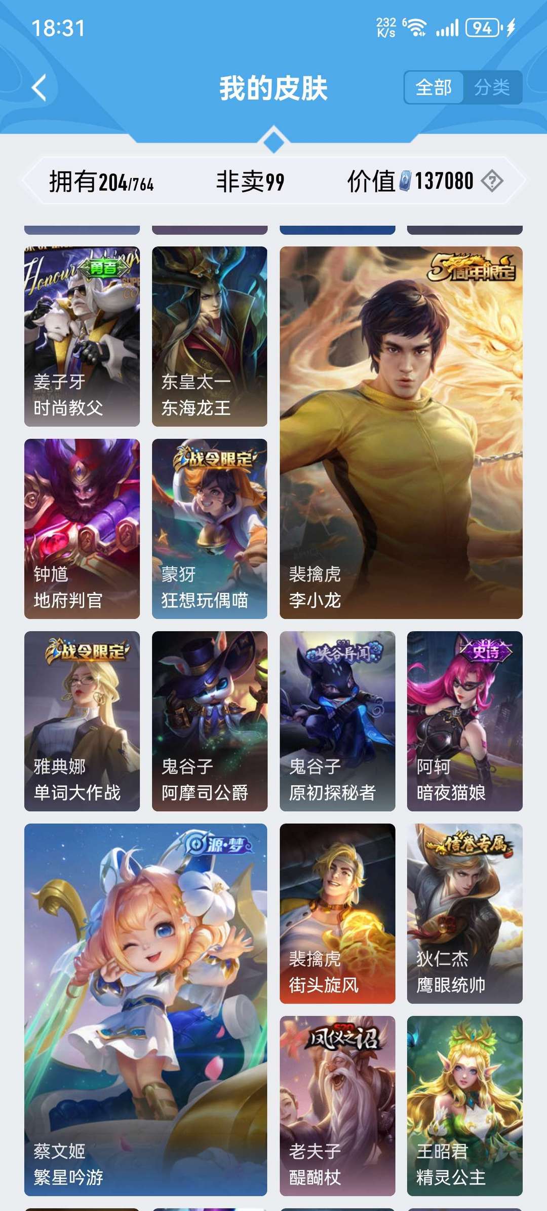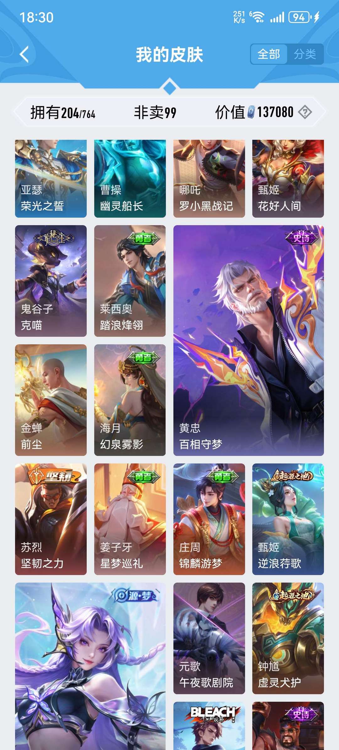 【非沄直接上号】极品V10★三历史国标★430皮★六典藏★诸葛亮新典藏★虎年五限定★鸣剑戈影★活力突击️★多限定