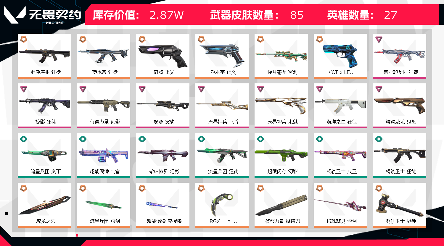 • 皮肤资产价值: 28700