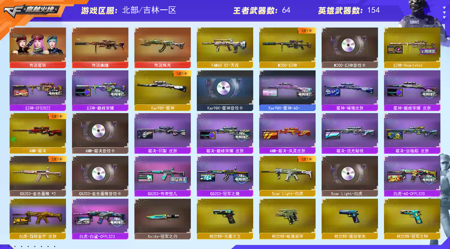 金色单ID:閅⭐超核⭐星骇幽瞳辉光⭐幻神3皮音⭐裁决3皮音⭐蝴蝶刀⭐星神3皮音⭐白虎3皮音⭐满配副武