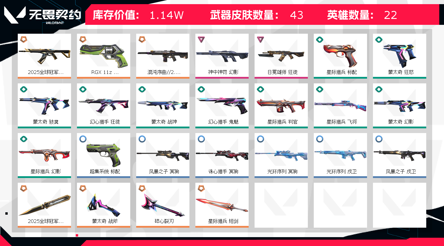 首页 > 租号大厅 > 无畏契约-wegame > wegame/wegame > 精品库存号💖25冠军套装💖混沌显卡狮子ak💖神罚幻影💖