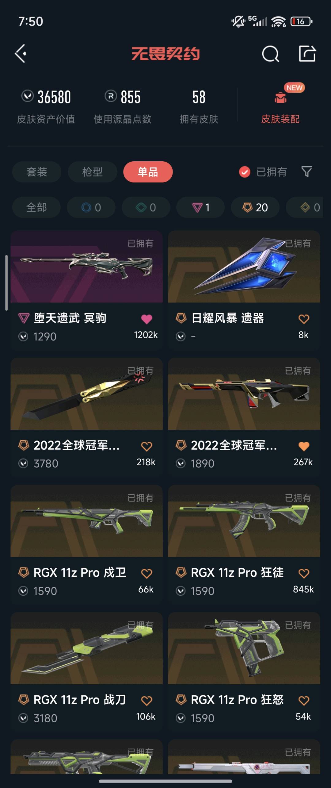 • 皮肤资产价值: 36580