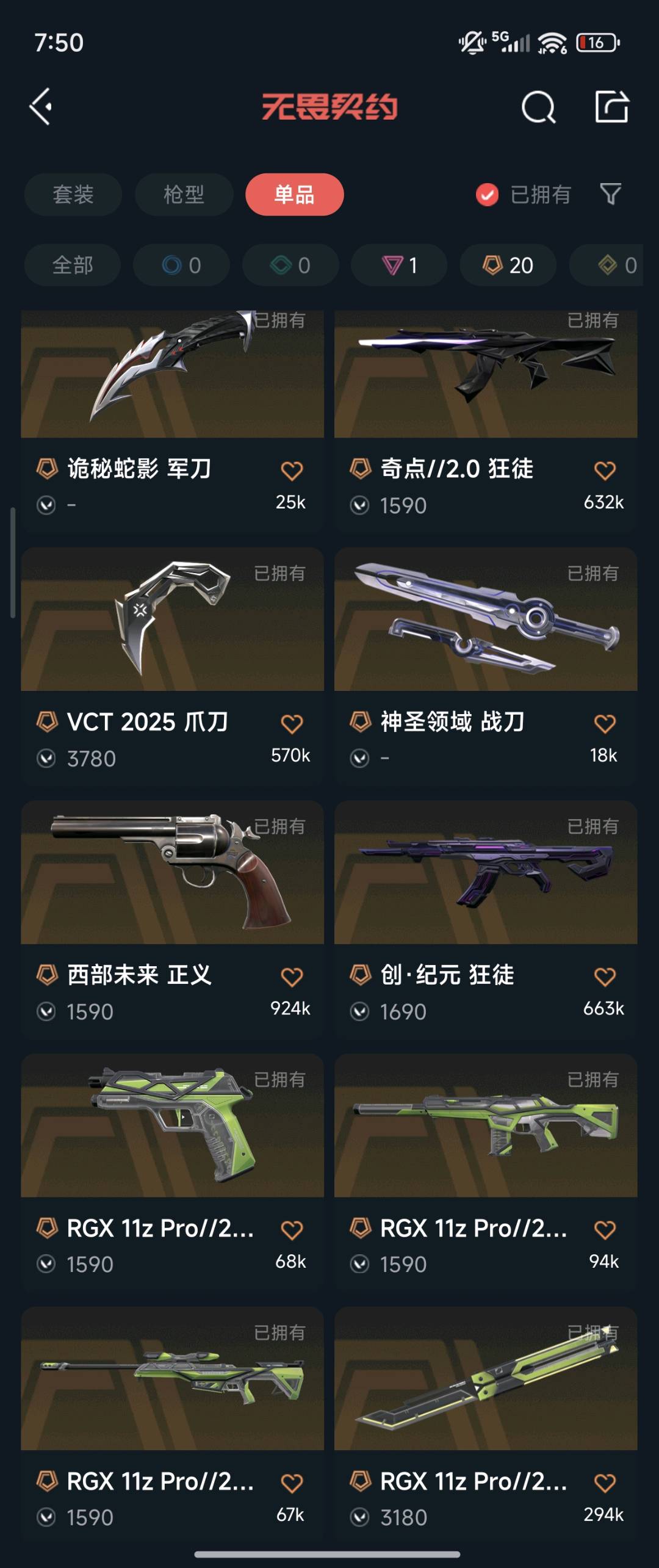 冻结发起申请,全天在线解除;VCT 2025 爪刀,RGX 11z Pro 狂徒,堕天遗武 冥驹,西部未来 正义,