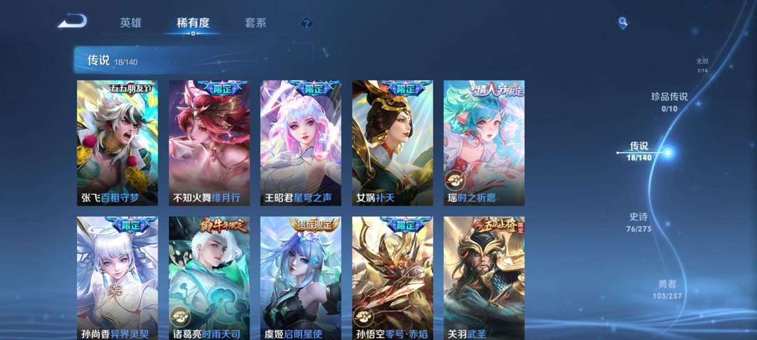 v10、537皮6水4无双、安琪拉-颠倒童话·魔镜、朵莉亚-神骥、遇见神鼓、齐天大圣、白虎志、韩信荣耀典藏、73传说、时之魔女、瑶无双、青丘、九尾、神器明辉仪