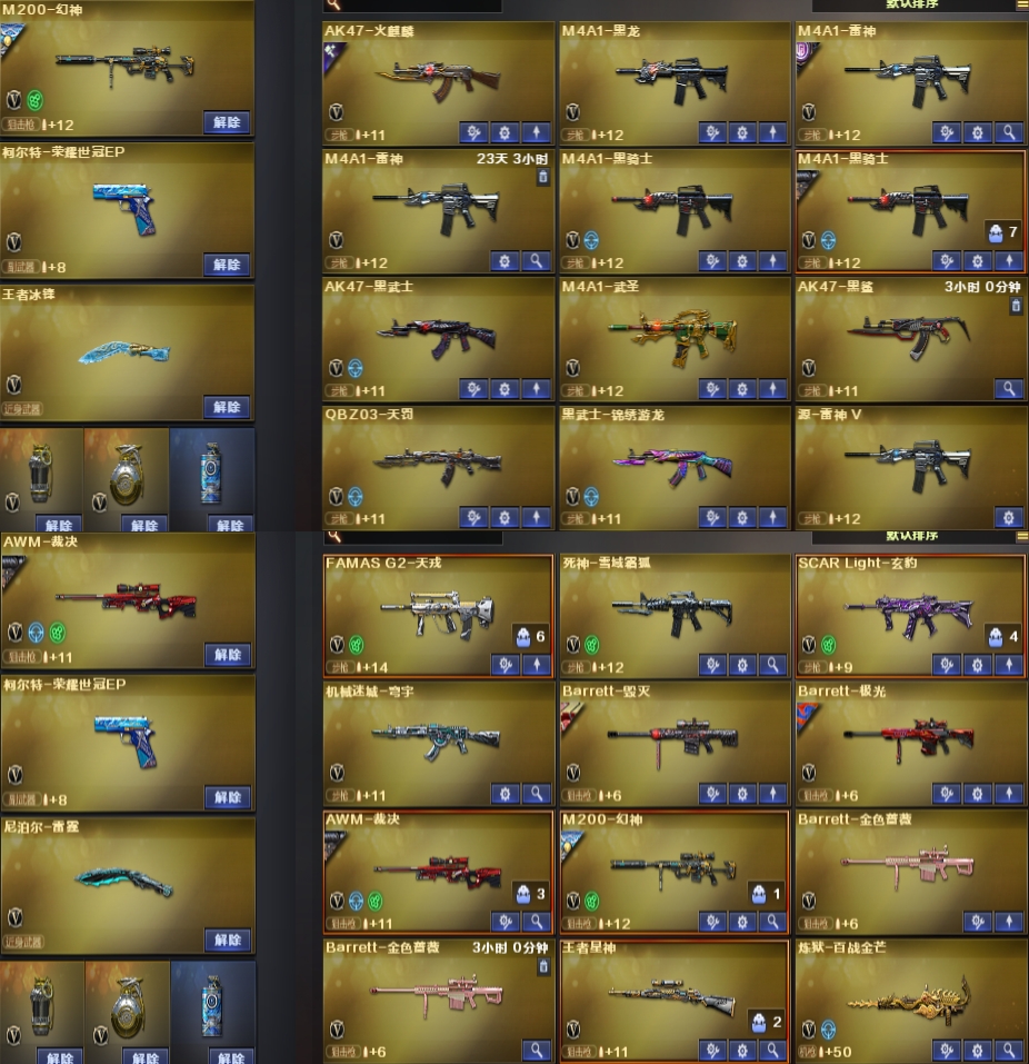 裁决三件套2皮,幻神三件套ep,满配手枪,四防传说星骇,王者星神玄豹白虎,禁止外挂