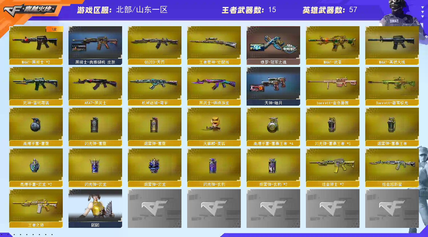 首页 > 租号大厅 > 穿越火线 > 网通区/山东一区 > 裁决三件套2皮,幻神三件套ep,满配手枪,四防传说星骇,王者星神玄豹白虎,禁止外挂