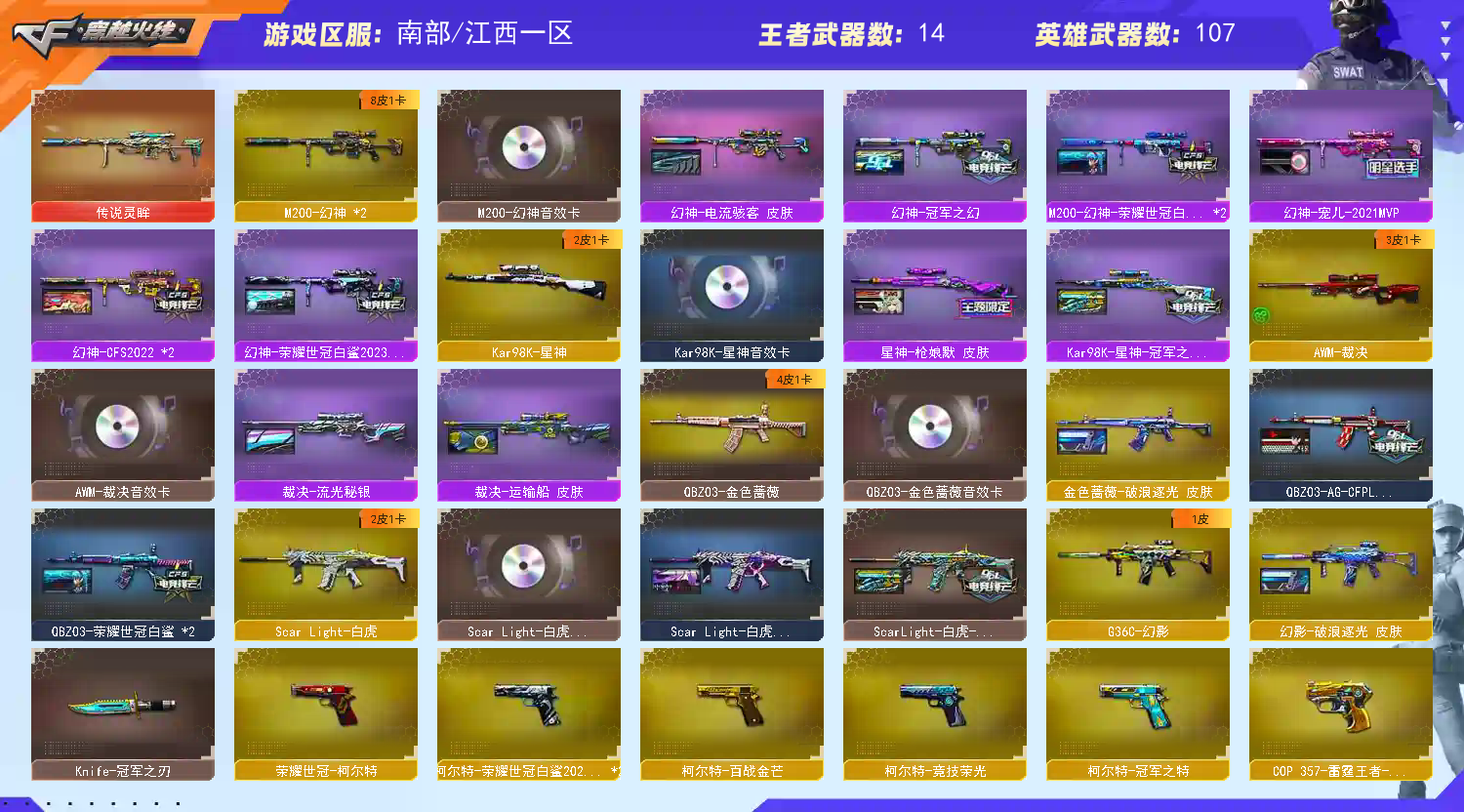 幻神7皮❤️幻神三件套❤️裁决三件套❤️星神三件套❤️全套冠军❤️全音效卡❤️满配手枪❤️传说灵眸