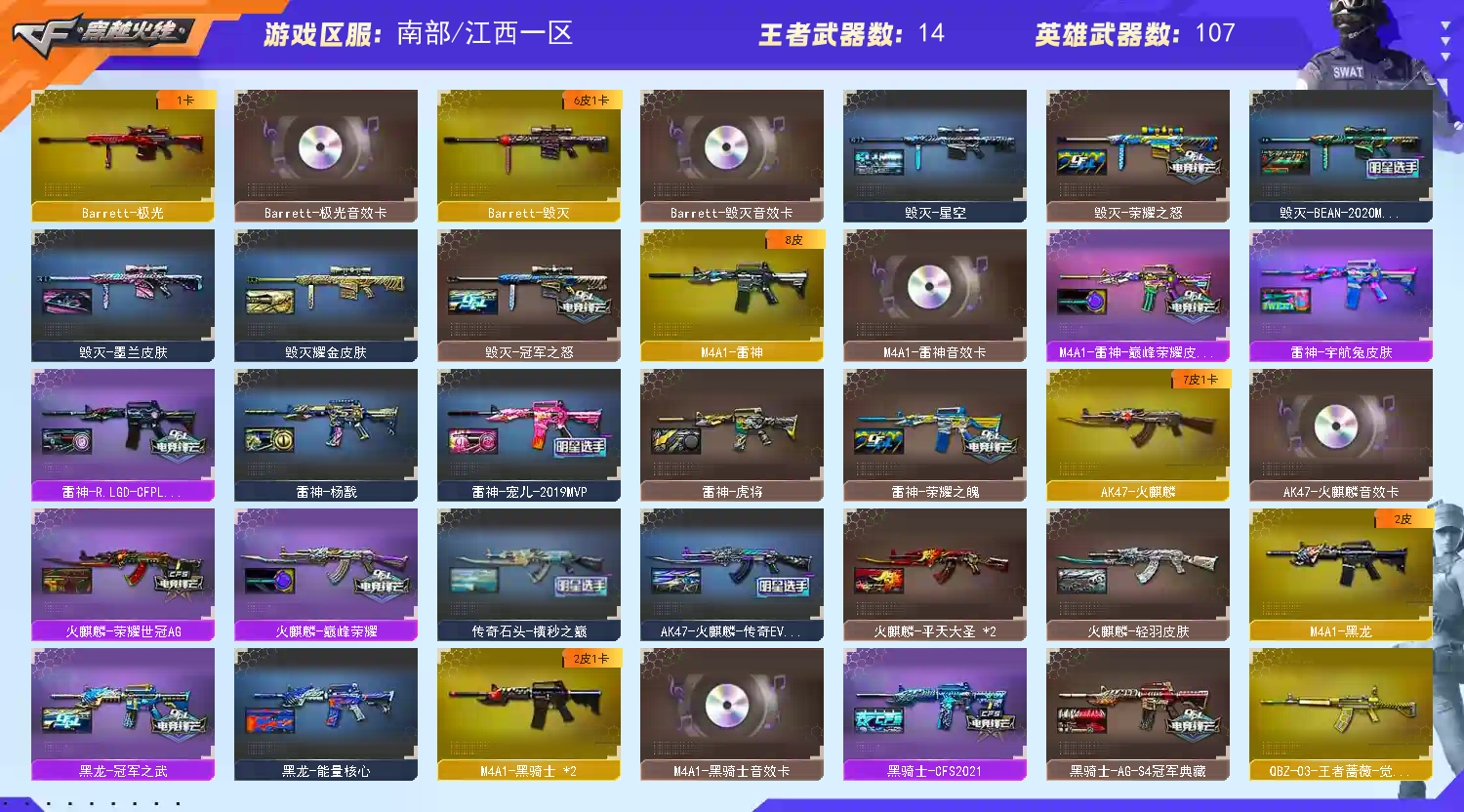 首页 > 租号大厅 > 穿越火线 > 电信区/江西一区 > 幻神7皮❤️幻神三件套❤️裁决三件套❤️星神三件套❤️全套冠军❤️全音效卡❤️满配手枪❤️传说灵眸