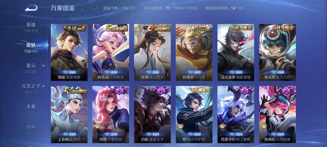 至尊宝 黄金狮子座 愿照·岁时盈 地狱之眼加星元 暗影游猎 银河之约孙行者铂金二50套铭文126英雄