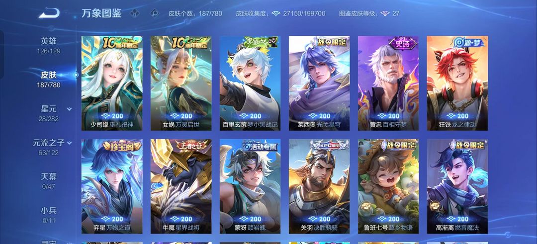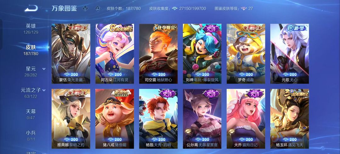 【非云直上】537满皮满典藏12星元◎鲁班新皮◎虞姬星元◎天使星元◎白金战神◎妲己绝版星元